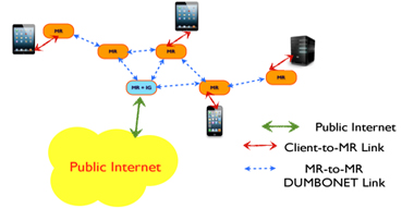 One or more special nodes act as Internet Gateway (IG).When at least one IG node is operational, everyone can access the Internet