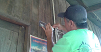 A rural community wireless mesh network. A villager installing a customize wireless router for DUMBONet.